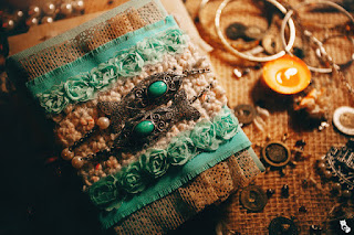 - Boho-glamour. Perhaps you thought - like me - that the "chic" of Boho-chic was synonymous with "sophisticated". Well, no. The Boho-glamour represents that "chic", that elegant touch that is given to work. It pretends to be a "posh" style. Here we use an elegant color palette, combinations of black with another color, glitter... And if we talk about fabrics: noble fabrics, cashmere, batik, leather... everything that gives "luxury". The most curious thing is that the "boho" is in the details, in the embellishments. There is no "super explosion" of anything. You can make a mini album with very simple pages but with very striking details.